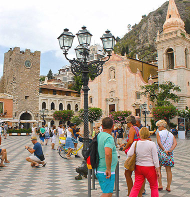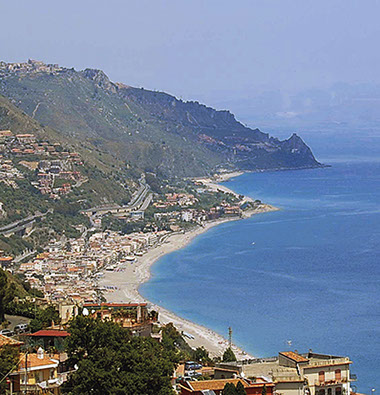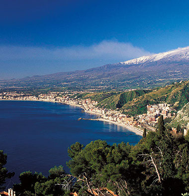 Thanks to its altitude, Taormina offers visitors a breathtaking experience. From its Ancient Theatre you can admire the bay of Giardini Naxos and Mount Etna, the highest active volcano in Europe, while on the other side you can gaze out over the coastline toward Messina and view the proximity of the Calabrian coast.