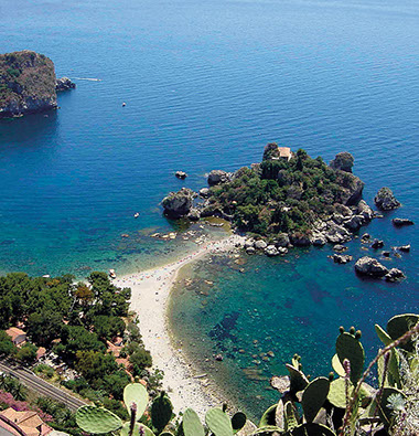 At the foot of Taormina, the famous bays of Mazzarò and Isola Bella with their crystalline waters.