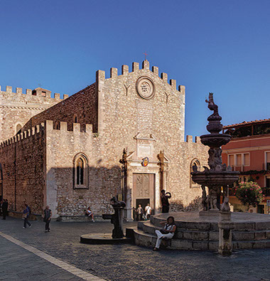 Corso Umberto is the main, pedestrian street at the heart of the town. Besides the Ancient Theatre, many are the monuments of Taormina such as the main Cathedral, the “Palazzo Duchi di Santo Stefano”, “Palazzo Corvaja”, the small Odeon theatre, the “Naumachie” and the lovely Public Gardens named “Parco Duchi di Cesarò”.